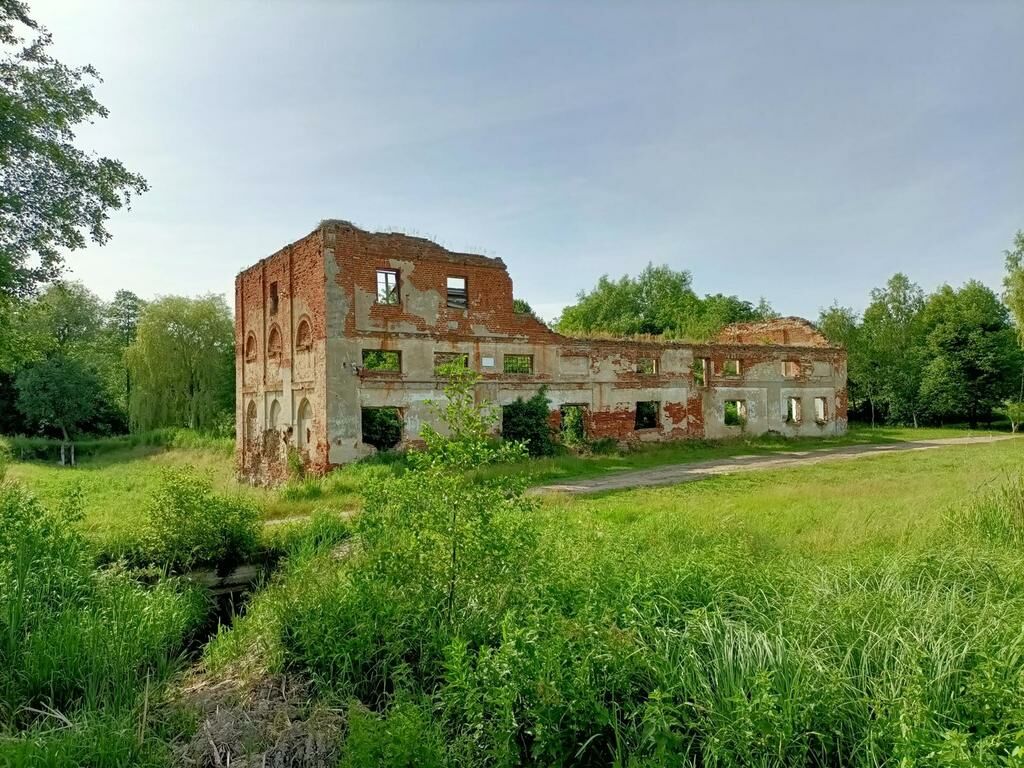 Działka 35 ha w tym 13,5 ha jako stawy rybne wraz z ruinami dawnejpapierni Czartoryskich z możliwością wykorzystania pod usługi
